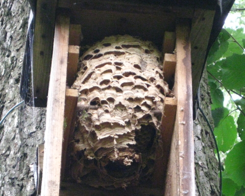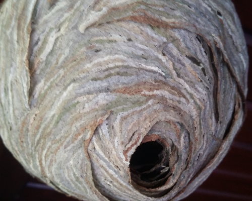 Wespen und Hornissen bauen Waben und die Umhüllung ihres Nestes aus einer papierartigen Substanz, die aus zerkauten Pflanzenteilen (Holz etc.) hergestellt wird. Die Umhüllung hat in der Regel Lufttaschen. Durch die unterschiedlichen Herkünfte des Baumaterials erkennt man aus der Nähe betrachtet verschiedenfarbige Streifen in den Waben und der Hülle.