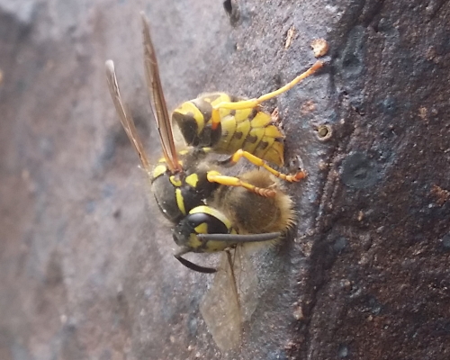 Heimische Wespen und europäische Hornissen haben diese gelb-schwarze Farbe. Zukünftig wird uns vermutlich auch eine eher schwarz gehaltene, asiatische Hornisse beschäfigen.